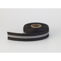 Reflective ribbon, .875in Wide, .25in reflective stripe, 5 yds, Black